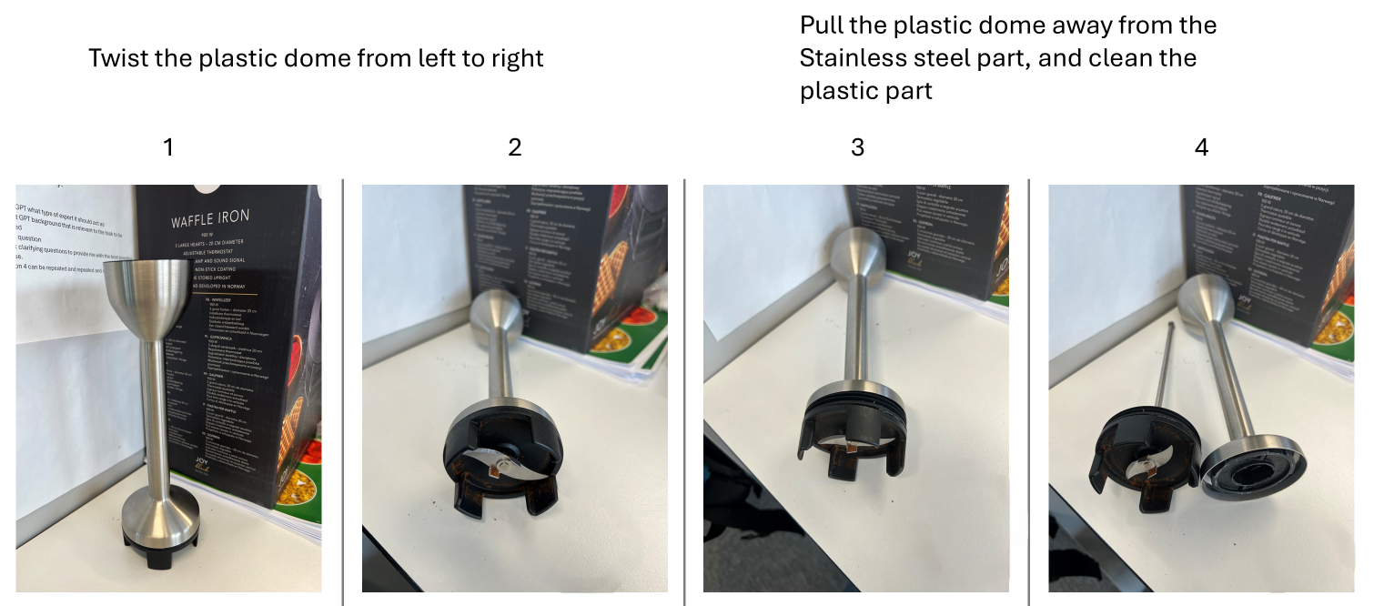 Det er mulig å ta bort nedre del for enklere rengjøring, se bilde nedenfor.